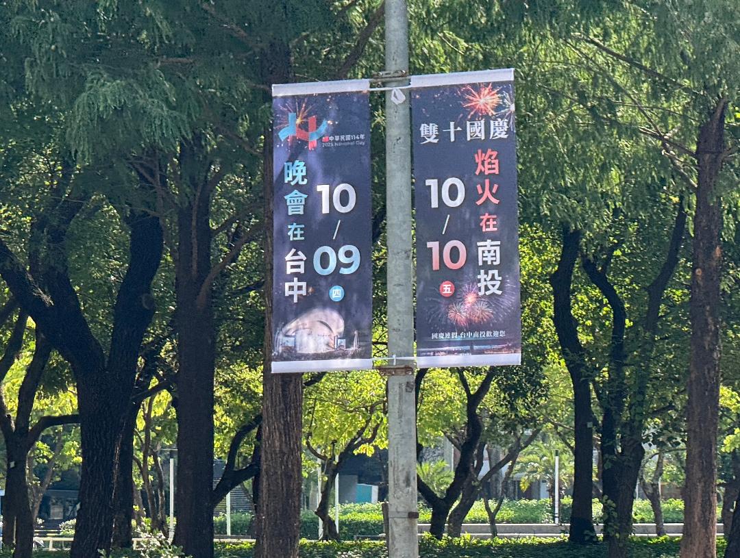 睽違8年,國慶晚會重返台中,將於10月9日在文心森林公園圓滿戶外劇場盛大登場!為營造國家慶典氛圍,並呈現「晚會在台中、焰火在南投」中台灣攜手喜迎雙十國慶的團結意象,台中市政府於台灣大道、市政路、文心路、向上路、五權西路等市區主要路段,懸掛兩款共計上百面的羅馬旗,讓各地民眾與歸國僑胞,都能感受到中台灣的溫度與熱情!