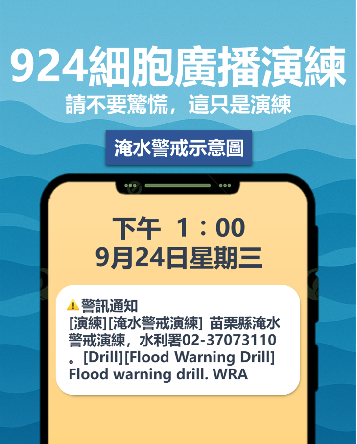 1140922水利署9月24日配合苗栗水災演習辦理淹水警戒細胞廣播演練 民眾收到訊息請勿驚慌