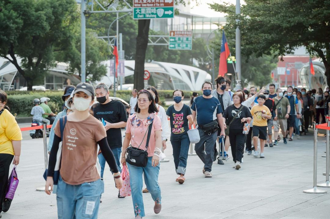 來自霧峰75歲的喻女士昨天下午4時多就來排隊,她說有多次來領取紀念品的經驗,有幾次太晚來沒領到,這次就提早前一天來排隊,很開心可以搶到頭香。