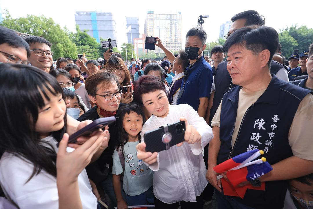 1141010中市府國慶升旗2.3萬人次擠爆府前廣場 75歲喻女士搶頭香紀念物秒殺 盧市長:七年辛勤耕耘迎市政豐收!