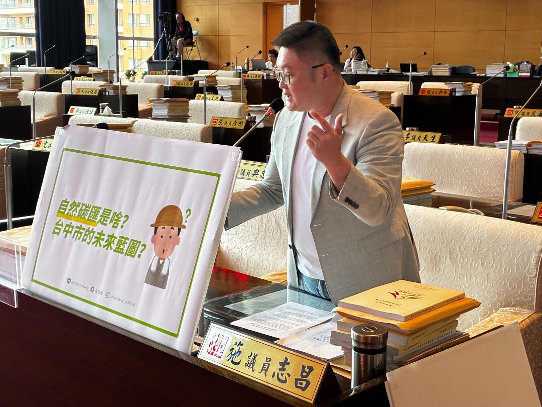 行政院於112年核定《臺灣2050淨零轉型自然碳匯關鍵戰略行動計畫》,明定「森林碳匯、土壤碳匯、藍碳海洋碳匯」為我國邁向淨零排放的三大自然支柱,並於112至113年間編列超過11億元預算推動。然而,台中市目前仍以個案式的「海岸造林」為主,欠缺完整策略與量化目標。台中市議員施志昌今(20)日在議會質詢時批評,市府自然碳匯無具體藍圖,農民也霧煞煞,他要求中市府儘速提出「台中市自然碳匯推動計畫」。