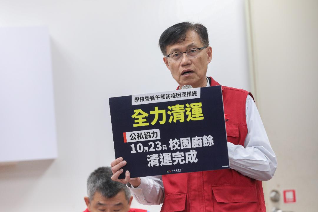 台中市政府教育局說明,目前學校營養午餐統計,公辦公營62所;公辦民營61所;外訂團膳有135所;他校供應有75所,總計333校,為落實防疫和環境安全,市府啟動跨局處協調機制,由環保局統籌各區的清潔隊,結合台中市團膳及食材業者,協力完成學校午餐廚餘清運工作,業者並依指示,將廚餘運送到文山、后里、霧峰及沙鹿四處指定掩埋場,確保作業安全、流程順暢,昨日全市學校午餐廚餘均已順利完成清運,運送至指定掩埋地點處理。