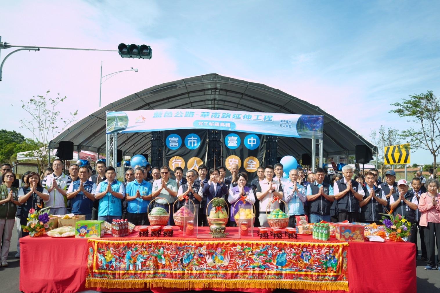地方期盼近20年的大肚區「藍色公路」華南路延伸工程,歷經台中市府團隊努力,今(31)日正式通車!由台中市政府副秘書長林育鴻代表市長盧秀燕主持完工通車典禮,全長1,864公尺、寬20公尺的華南路自遊園路延伸至向上路,如同將藍色項鍊延長,串起大肚山脈,形成絕世美景;工程總經費斥資13.26億元打通大肚山交通瓶頸,不僅紓解遊園路及中台路口長期壅塞,也兼顧行人安全與生態永續,成為居民期盼已久的重要建設。