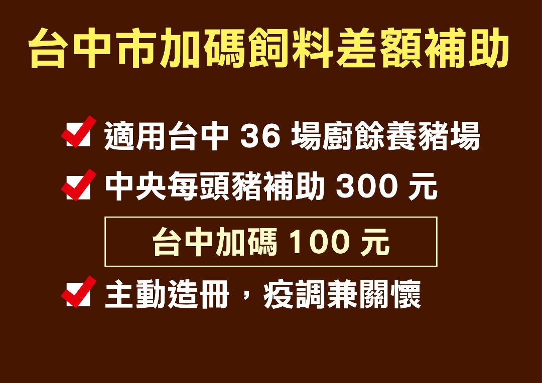 1141101中市加碼飼料差額補助!攜手中央第二輪防疫強化 盧市長:啟動「四大防疫支持方案」杜文珍次長:非洲豬瘟案例場清消完成 將啟動兩輪環境採樣