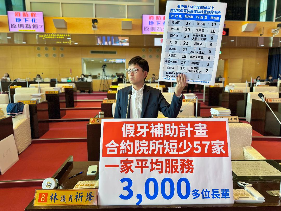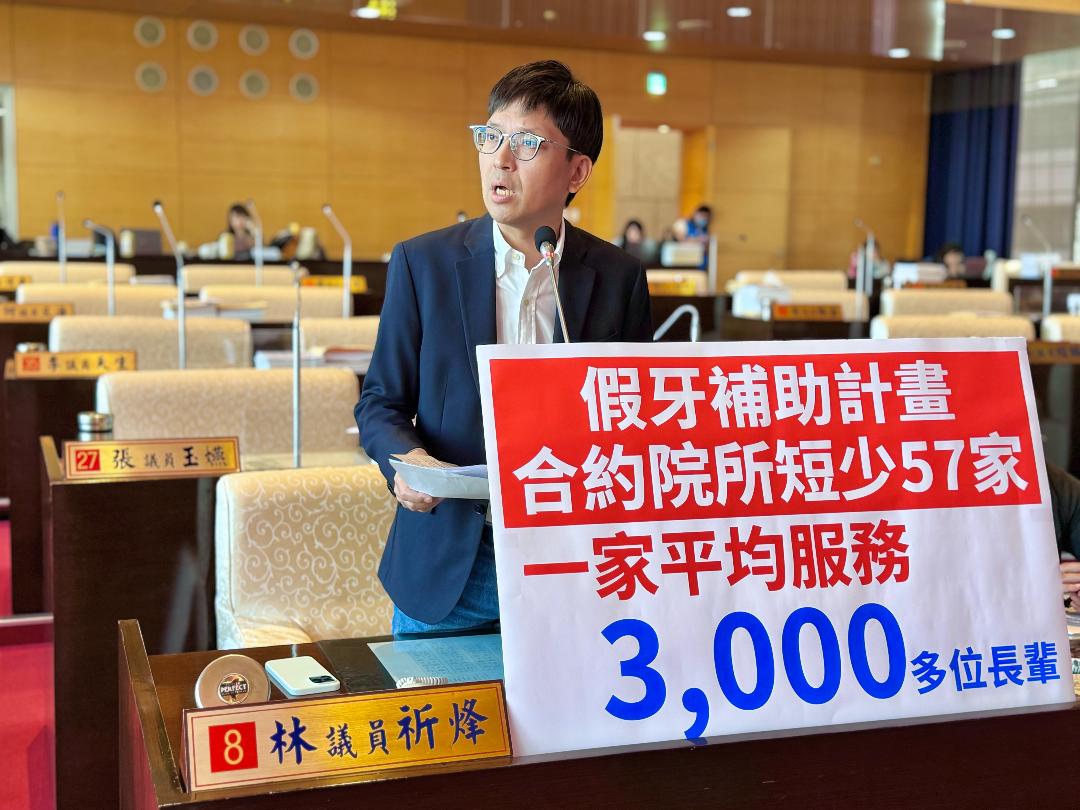 1141103台中市假牙補助四年流失57家合約院所 中市議員林祈烽:數區牙醫診所平均服務逾三千名長輩