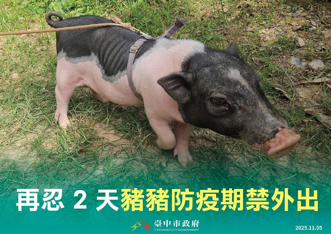 1141105非洲豬瘟疫情無外溢!非洲豬瘟防疫分階段解封!11月6日中午12時起開放活豬運輸、7日恢復屠宰 最後關鍵時刻 台中加嚴不鬆懈 三大配套措施守護台中到最後一刻
