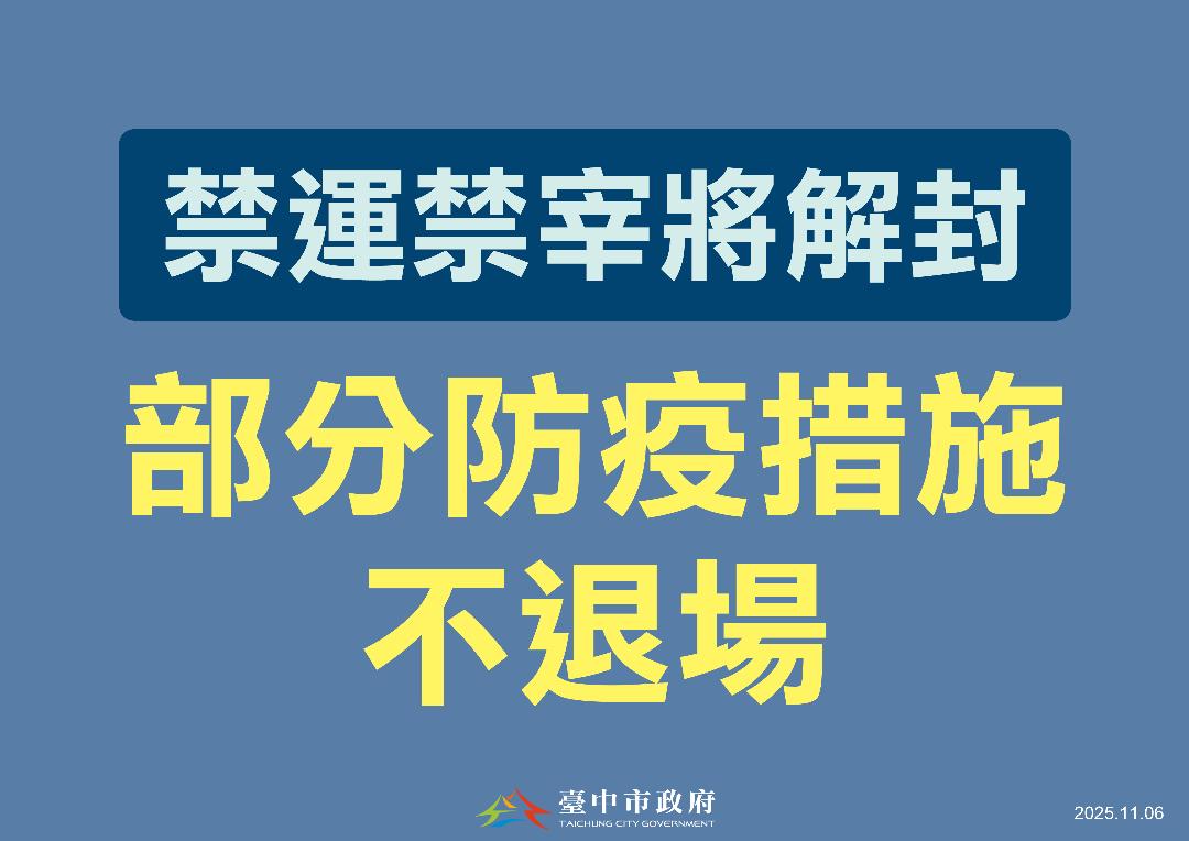 非洲豬瘟疫情獲得控制,中央宣布今(6)日中午12時起解除活豬禁運,明日凌晨起恢復屠宰與拍賣。市長盧秀燕出席非洲豬瘟前進應變所記者會表示,中央與地方通力合作防堵疫情,感謝所有防疫人員、市民及產業界的支持,解封不等於防疫工作結束,目前全國一致仍禁止以廚餘養豬,市府針對案例場與案主住家持續監管,學校剩食禁止打包措施再延長一週,確保疫情不復燃,呼籲全民共同遵守管制,守護台灣豬產業安全。