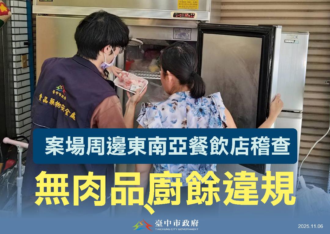 衛生局表示,因應疫情啟動食安專案稽查,截至11月5日共查核1,185件,包括55家東南亞餐飲業135件產品,均未違規。因中央自今日中午恢復活豬運載,明日零時起恢復拍賣、屠宰及運輸,衛生局已提前輔導肉品運送業者,要求落實車輛清潔消毒及運輸管理,今日已全數完成清消確認。