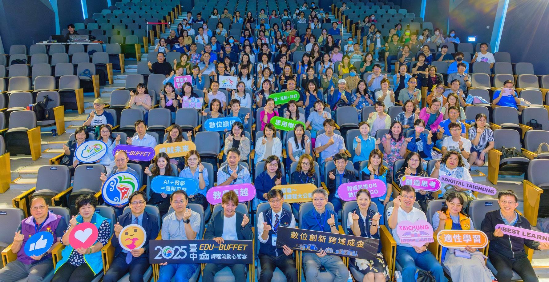 由台中市政府教育局主辦的「2025台中EDU-BUFFET課程流動心饗宴—數位創新.跨域成金」課程博覽會,今(8)日上午於市立惠文高中惠文歌劇院盛大登場,活動吸引來自全市各級學校教師、家長及全國教育先進,計約600人熱烈參與,現場座無虛席,充分展現台中教育創新實力與共學精神。