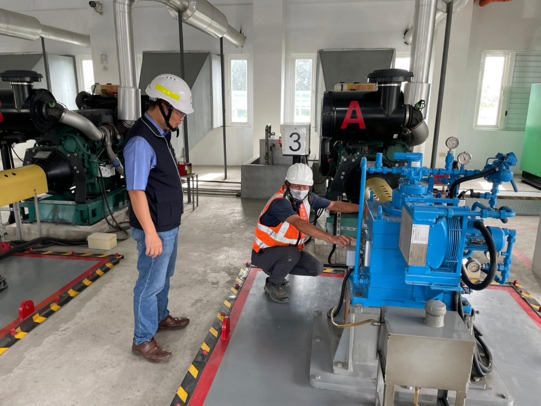 今日抽查由水利局盧專門委員領隊進行,現場操作人員均熟悉作業序,測試發電機組、抽水機組功能皆維持正常,抽水站現場已完成防汛整備作業。水利局指出,5座抽水站全天候人員駐守,平時皆依規定進行抽水機組、水閘門保養維護並定期試運轉測試,且每年要求機械技師進行設備檢驗,藉由平時維護保養工作的落實,確保颱風豪雨期間發揮最大的效益。