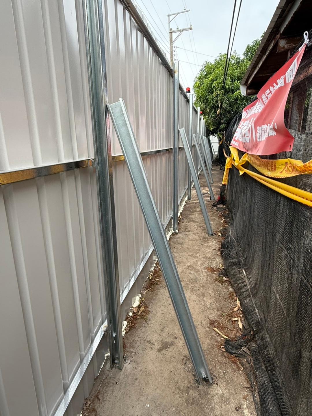 建設局長陳大田說明,經與動保處現勘後,案場採用2.4公尺高甲種圍籬,並於內側增設C型鋼支架,支撐結構以鋼筋打入地面並焊接固定,大幅提升抗風強度;同時以發泡劑封閉下方縫隙,加強防護效果。全長約82公尺的圍籬以最快速度在一天內完工,展現高效率執行力,並獲研考會主委林鼎超現場肯定。