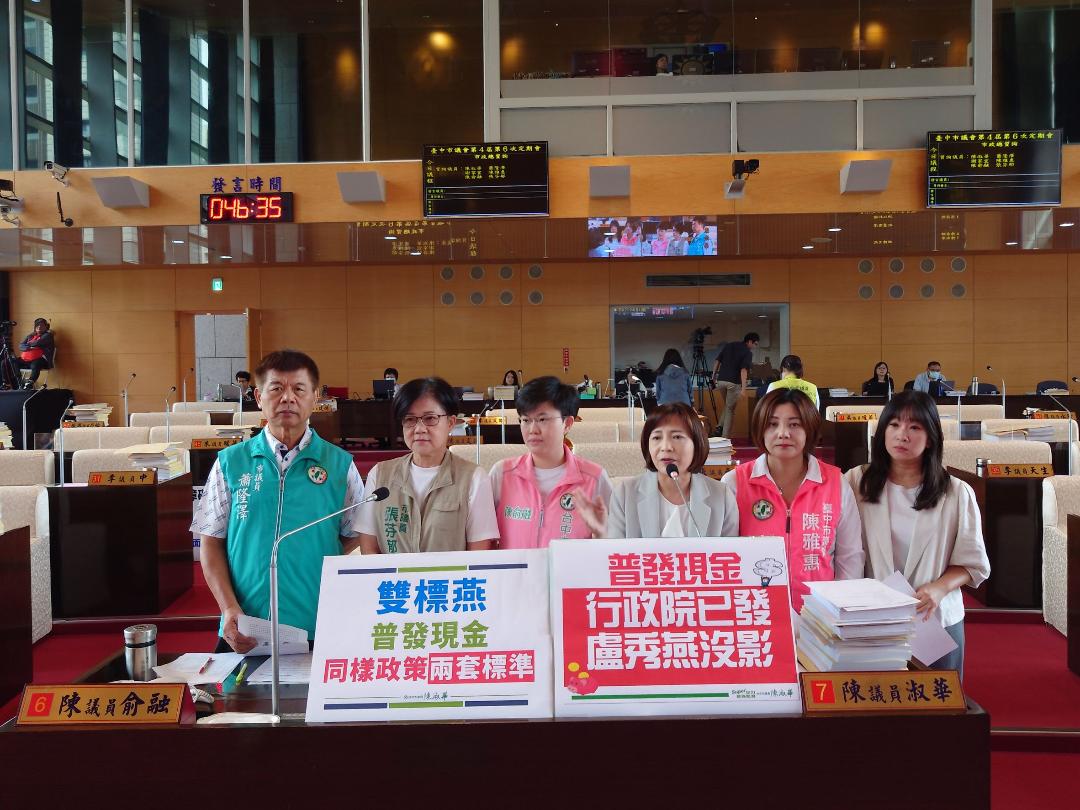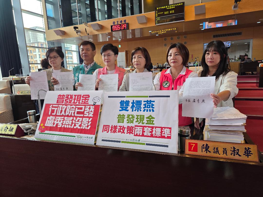 1141113陳淑華批盧秀燕市長不普發現金、建設延宕 林祈烽等議員人手1疊5萬現金促發錢 盧秀燕回應引用王義川說法:「詐騙」若有餘裕非常樂意普發