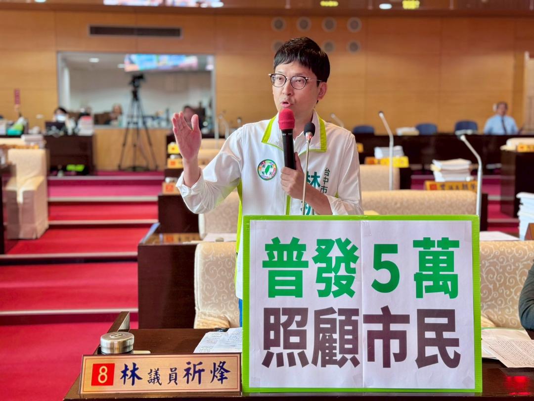 市議員張芬郁表示,盧市長拒絕普發現金五萬,市民非常失望,台中市賣地收入、超收稅款二百億、統籌暴增295億,市民均認為台中財源有能力普發現金,但是市府回覆議會一張紙「0元」,完全不提出對策,市民的心聲「普發現金多少就看市長的誠意」。