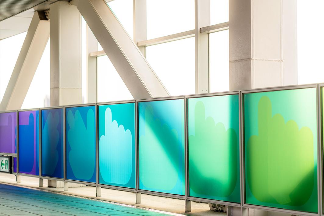 中捷公司攜手在地青年藝術團隊 「弈屹研造有限公司」與「OPEN Lab 放開建築實驗室」,今年初將7種生活中常見手勢語言轉化為公共藝術,分別設置在綠線各站並延伸出每站的主題色系。此次,藝術團隊以18個車站的主題色為創作基礎重新編排,再將手勢圖像以相近色組成的色群延伸在天橋兩側牆面,形成視覺層次豐富且韻律分明的畫面,建構出充滿節奏的「彩虹天橋」,再度為台中捷運車站空間注入創新視覺能量。