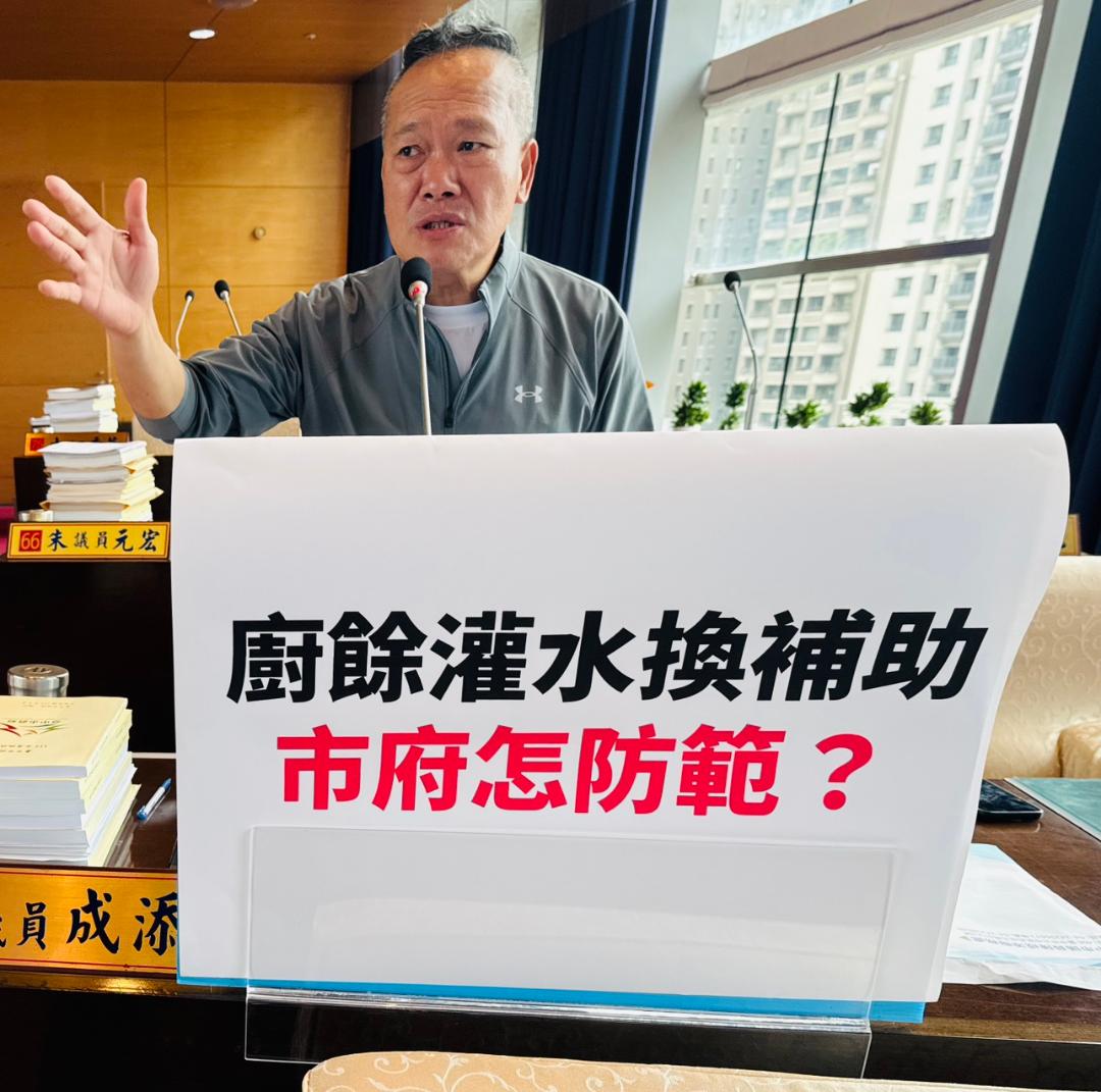 1141128中市議員陳成添關心廚餘補貼漏洞 盧市長: 嚴加稽查不法 中長期設施雙軌並行