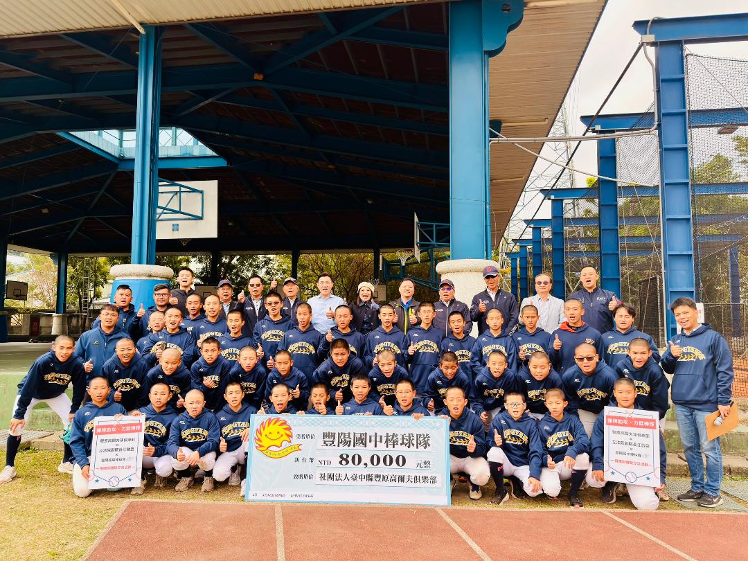 為支持基層棒球運動、協助選手無後顧之憂投入訓練與賽事,立法院副院長江啟臣今(4)日牽線社團法人臺中縣豐原高爾夫俱樂部,由理事長張炳坤率領多位理監事共同捐贈新臺幣八萬元給豐陽國中棒球隊,以實際行動力挺在地青少年運動發展。江啟臣表示,豐陽國中是一所五育並重的學校,不論棒球、籃球、滑冰、舞蹈、美術與合唱等領域,都能看到孩子為夢想努力的身影;得知棒球隊在訓練及賽事經費上存在不足後,他第一時間向豐原高爾夫俱樂部反映需求,並獲得俱樂部立即且全力支持。