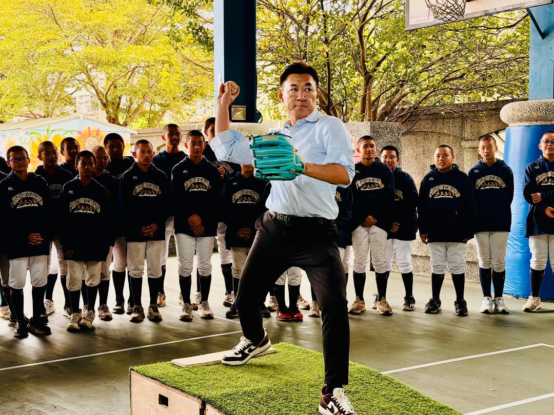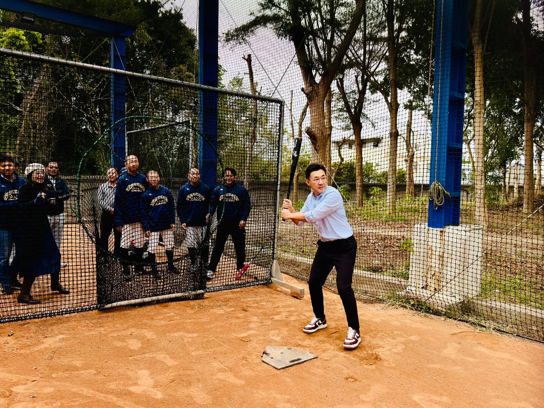 在捐贈儀式後,江啟臣也親自下場與球員同樂,不僅登上投手丘投球,飆出多顆好球引來全場歡呼;在打擊練習中也多次紮實咬中球心,讓教練笑稱「副院長有機會來兼任客座教練」。江啟臣並逐一與球員擊掌,鼓勵他們全力以赴,現場氣氛熱絡而溫馨。