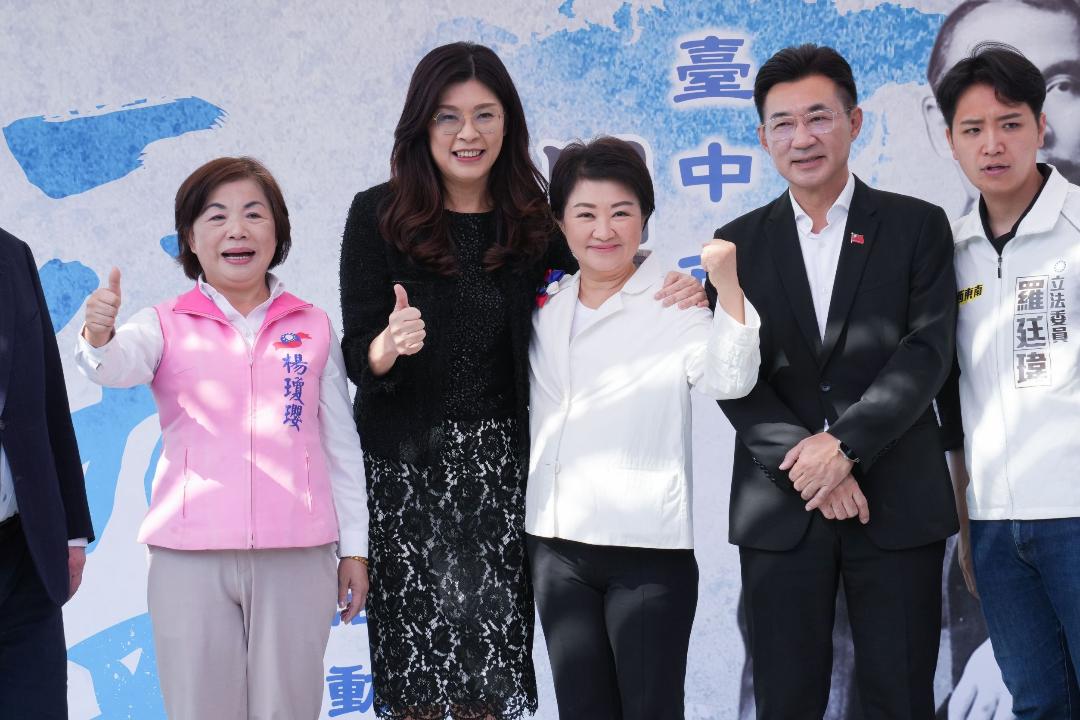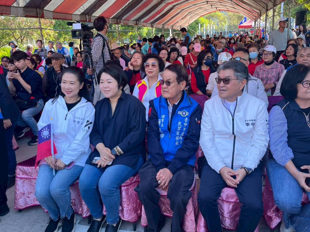 今日典禮藍營要角雲集,包括立法院副院長江啟臣、國民黨副主席兼秘書長李乾龍、立委楊瓊瓔、廖偉翔、羅廷瑋、黃健豪、台中市議會副議長顏莉敏、議員李中、黃佳恬、邱愛珊、陳政顯、陳文政、賴義煌、張瀞分、林碧秀、沈佑蓮、台中市黨部主委蘇柏興、副主委陳明振等人均到場,展現大團結氣勢。