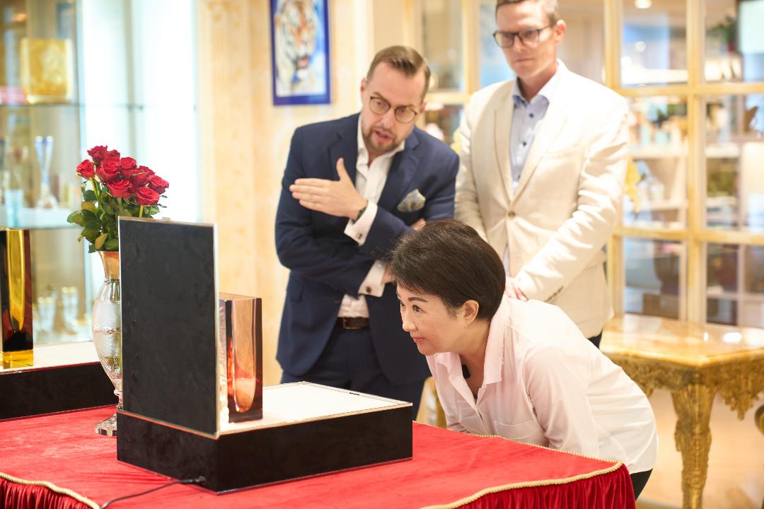 晚間,他造訪大遠百的「國裕精品」Moser 水晶櫃位,欣賞捷克手工吹製與雕刻工藝,驚嘆表示:「沒想到台中藏著這麼多捷克驕傲!」 最後與市長盧秀燕會面時,盧市長笑問他的中文進步多少,史代表則把會講的中文一口氣說完,還不忘提及他最自豪的「穿山甲台捷動物園交流」,逗得全場大笑。