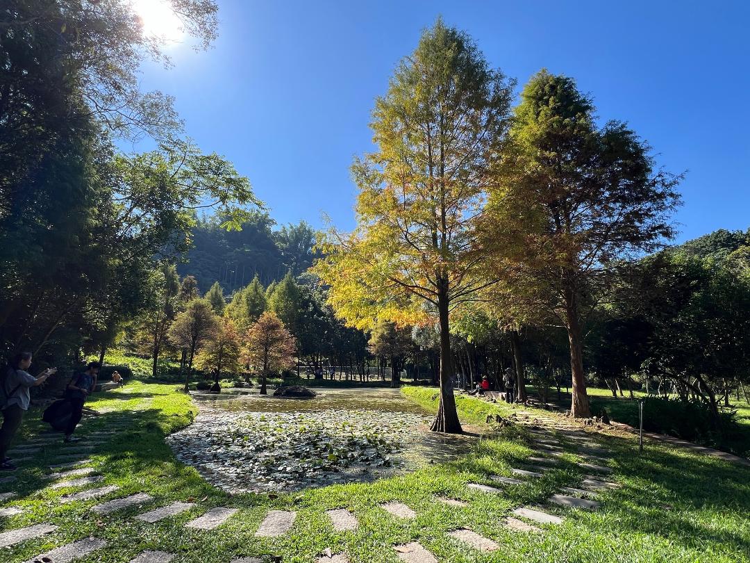 陳局長進一步說明,位於太平區的「太平苗圃落羽松林」更是隱藏版賞景秘境,園區內栽植上百株落羽松,林木排列整齊、倒映水面,隨季節光影變化呈現不同層次的色彩,景致如畫。每到入冬時節,樹梢自綠轉金,再漸染橘紅,搭配藍天白雲,宛如置身歐風童話森林,吸引不少攝影愛好者專程前往取景。