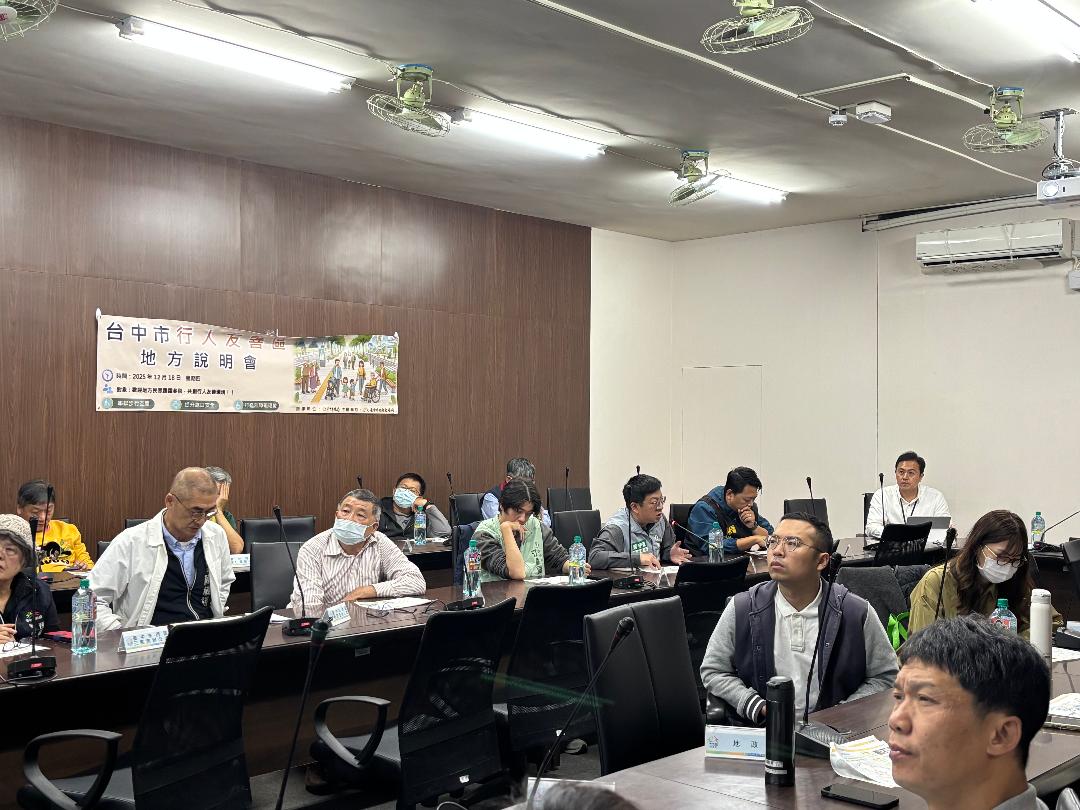 為建構更安全、友善的步行網絡,台中市政府於「台中州廳」及「市政特區」兩大示範區域,分別舉辦「行人友善區規劃」地方說明會,廣泛聽取地方民意。與會民意代表、學校及商圈代表皆對優化步行環境表達高度支持。交通局長葉昭甫表示,市府將從「歷史舊城」與「現代都心」中車流量較低的生活巷弄著手,規劃行人優先區,並於校園周邊主要道路建置通學區,經彙整各界意見並審慎研議後逐步推動,落實人本交通理念,打造宜居、安全的幸福城市。