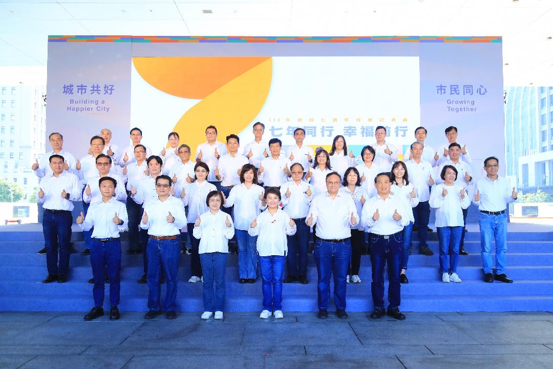 台中市長盧秀燕率領市府團隊執政滿7年,即將邁向第8年,今(24)日舉行施政7週年成果記者會,以「七年同行、幸福前行」為主軸,向市民報告7年來的施政成果。她特別回顧第一年就職典禮上許下的諾言,以「顧家最重要的三件事」巧妙比喻市政治理,感謝市民家人一路相挺與支持,她將為台中奮鬥到最後一秒鐘。參選台中市長的立法院副院長江啟臣及立委楊瓊瓔都到場,.被安排坐在一起,盧秀燕致詞時還說,明年此時是新任市長的就職,「新市長可能就是在場的人」。國民黨市議員李中會後表示,市長陳述7年來的政績,如空氣變好、捷運綠線通車及國際會展中心、綠美圖啟用等,重大建設有進步,市民可感同身受,盧秀燕說,不用急著替她找工作,但他建議盧秀燕卸任後參選總統,因為中部建設會更多,中部人才可至中央,對中部好,中市發展經驗也能運用到全國共同成長、發展。民進黨議員批評,致詞沒有亮點,最後一年也讓人無法期待。