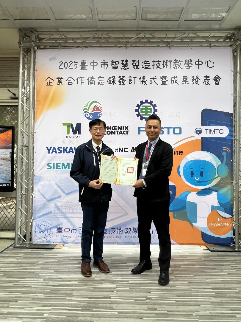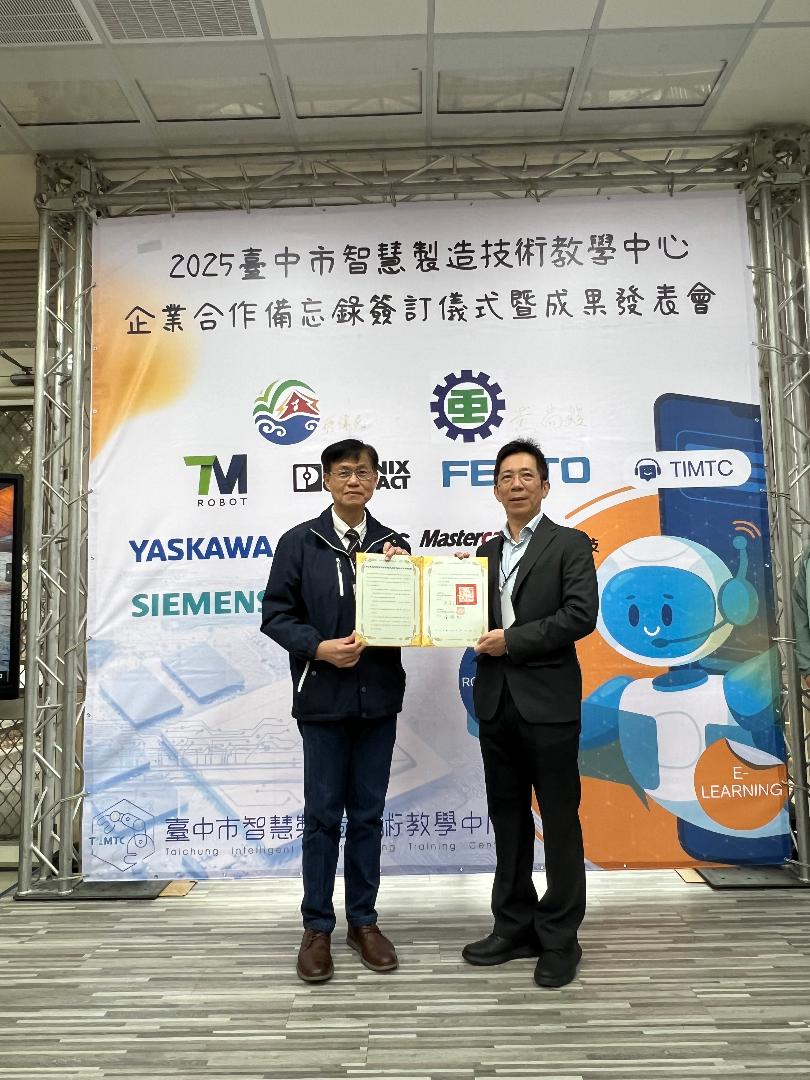 教育局指出,技職教育需要產官學研共同合作與投入,智慧製造中心今日將與達明機器人股份有限公司、菲尼克斯有限公司、飛斯妥有限公司、眾宇科技有限公司、安川電機股份有限公司、西門子股份有限公司、德商台灣易格斯有限公司及SMC(速睦喜)公司等8間企業簽署合作備忘錄,共同深化本市技職與優質產業之整合及鏈結。