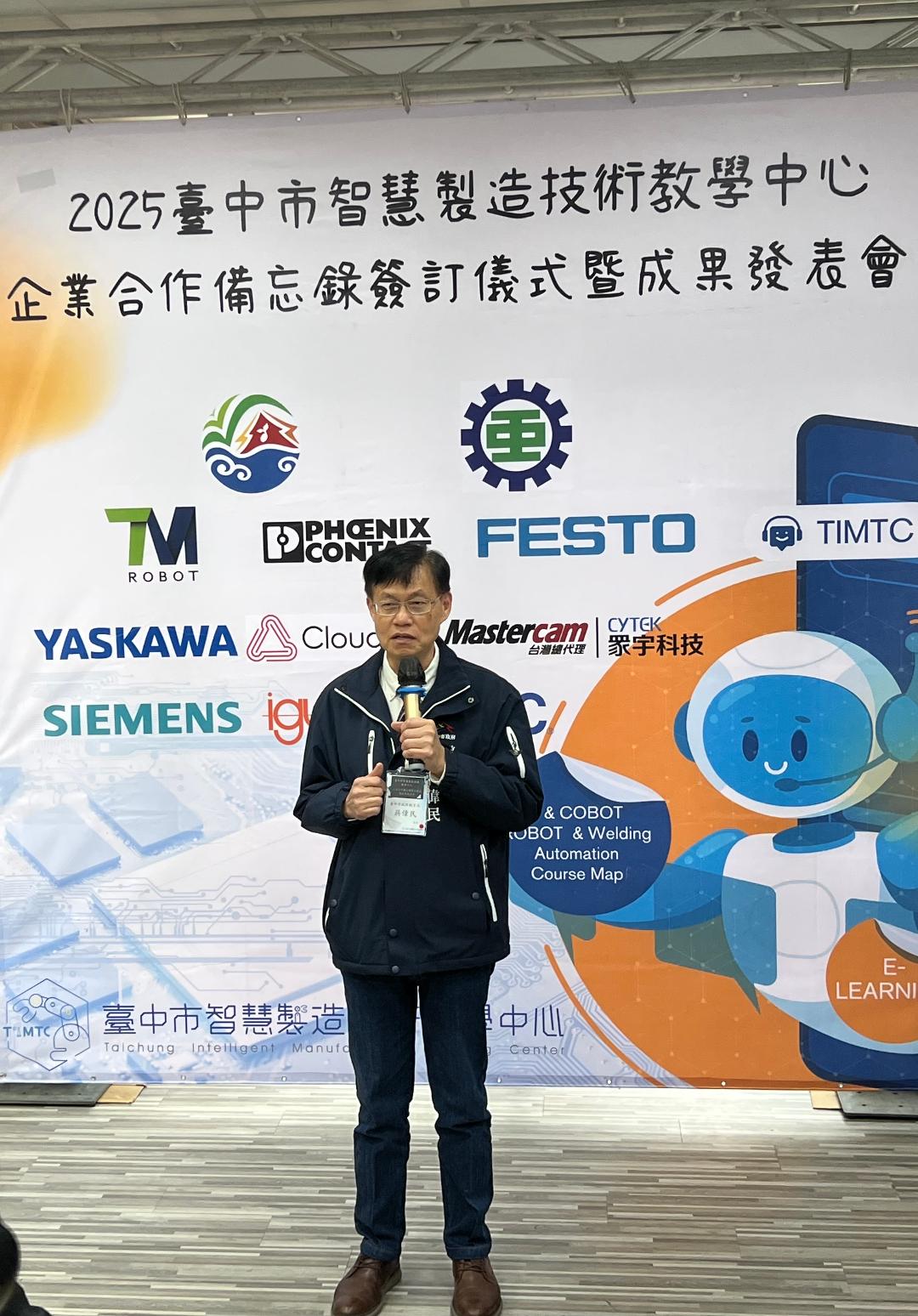 教育局長蔣偉民表示,市長盧秀燕重視技職教育的發展,為培育符合全球產業未來的人才需求,教育局挹注經費,於111年在台中高工成立智慧製造中心,引進智慧製造最新技術與知能,整合各校資源成立教師共備社群,打破產學合作藩籬,善用業界最實務之教學資源、研發課程教材,並提供各級學校學生於智慧製造產業實務學習。
