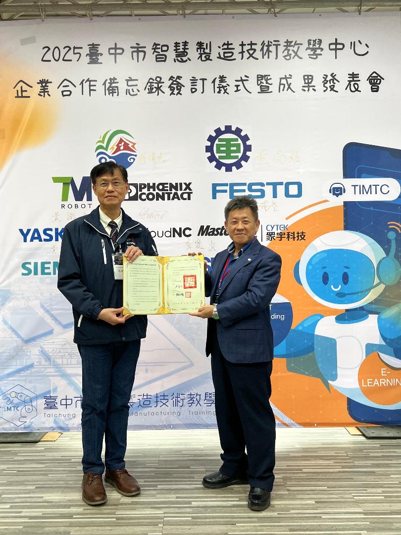 「台中市智慧製造技術教學中心」今(26)日辦理成果發表會,除了展現4年來技職推動的成果,並與8間企業簽署合作備忘錄,共同提升工業4.0智慧製造技術,增進教師專業能力及學生就業競爭力。