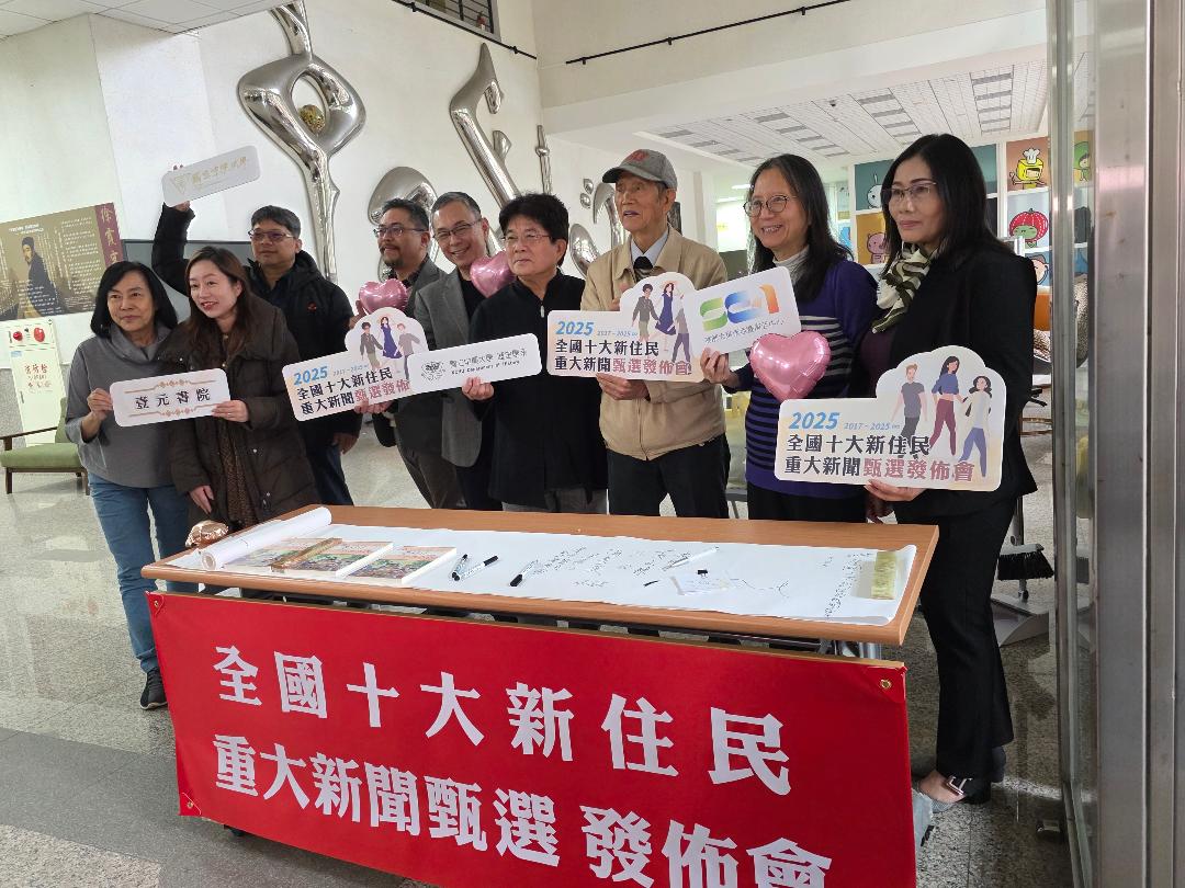 「十大新住民重大新聞甄選」邁入第九年,27 日在國立中興大學人文學院舉行發布會,正式公布「2025 年度十大新住民重大新聞」。主辦單位指出,今年入選新聞以立法院三讀通過《新住民發展署組織法》、內政部增設新住民專責機關為首,象徵新住民政策由分散推動,正式走向制度核心;同時也涵蓋就業制度改善、微型保單擴大、新住民在台創業與取得就業金卡長居,以及新二代在教育、文化與產業領域的亮眼表現,甚至倒會事件的新聞也引發討論,呈現新住民議題已由過往福利與照顧取向,逐步邁向制度治理與社會整合的新階段。