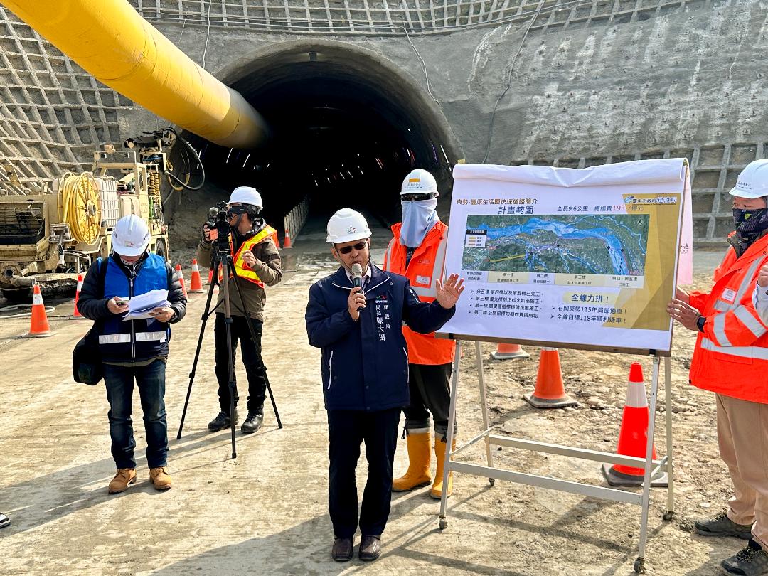 建設局表示,「東勢-豐原生活圈快速道路」全線總經費約193.7億元,全長9.6公里;其中,東勢至石岡段工程正如火如荼施工中,預計於今年完工並優先開放通車。至於全線最具挑戰性的「公老坪山隧道段工程」,總經費約58億元、全長2.4公里,隧道長度達2公里,為台中市境內單一長度最長隧道;在建設團隊全力推進下,豐原端隧道口鑽掘深度已突破170公尺,石岡端亦同步施工,目標於118年全線貫通。