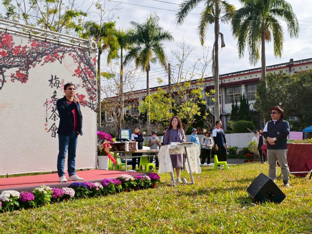 1150109梅香伴書香、科技助學啟航 新成國小「梅香茶會」產學攜手 客委會主委江俊龍讚譽梅花為「山城客家之花」
