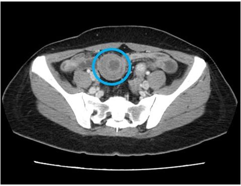 收治該患者的腸胃科黃一修醫師表示,患者的腹痛並非一般胃炎,經安排腹部電腦斷層檢查,影像顯示小腸出現「標靶徵象」,診斷為「腸套疊」。立即啟動跨科會診,將患者轉由一般外科王志浩醫師接手,進行緊急微創手術治療。