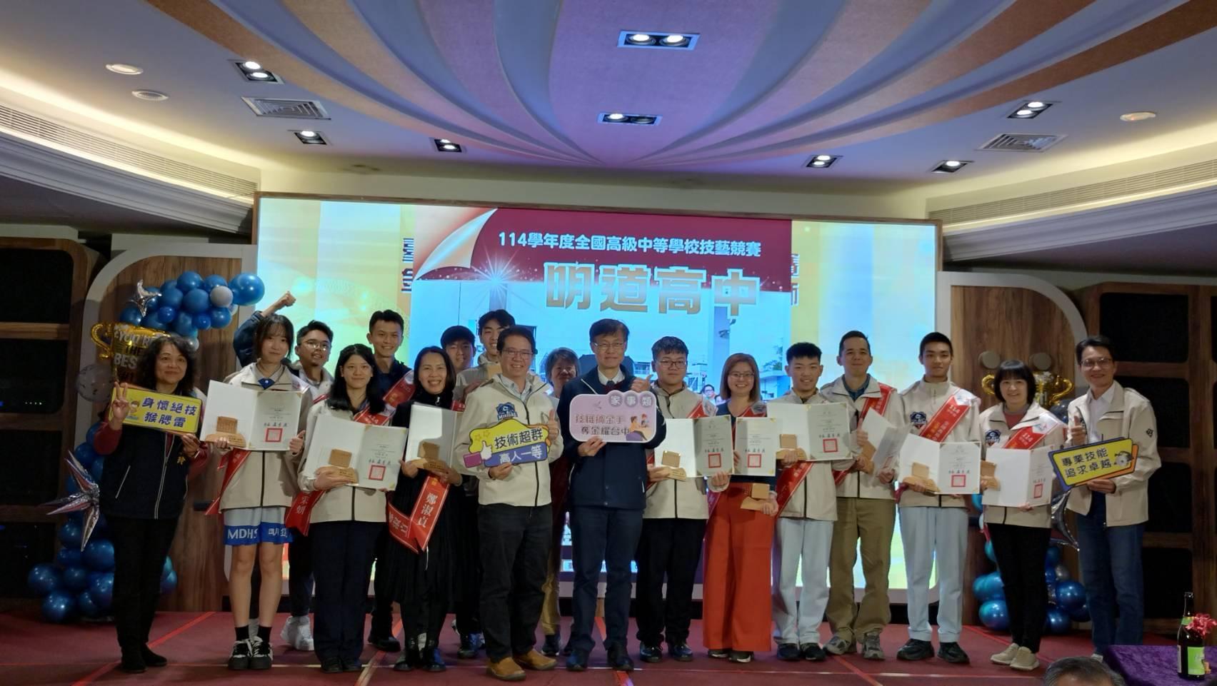教育局長蔣偉民表示,市長盧秀燕強調技職教育是國家經濟發展重要的人才培育體制,教育與產業脈動息息相關,教育局用心推動技職教育,已連續8年榮獲中央評鑑「優等」最高殊榮。除114學年度在全國技藝競賽台中市獲獎總數為全國第一,在2025亞洲技能競賽中,台中共7位學生獲國手資格代表國家出賽,最終取得2金1銀2銅佳績,感謝所有指導教師與學生的辛苦付出,讓台中市技職教育獨占鰲頭、躍上國際。