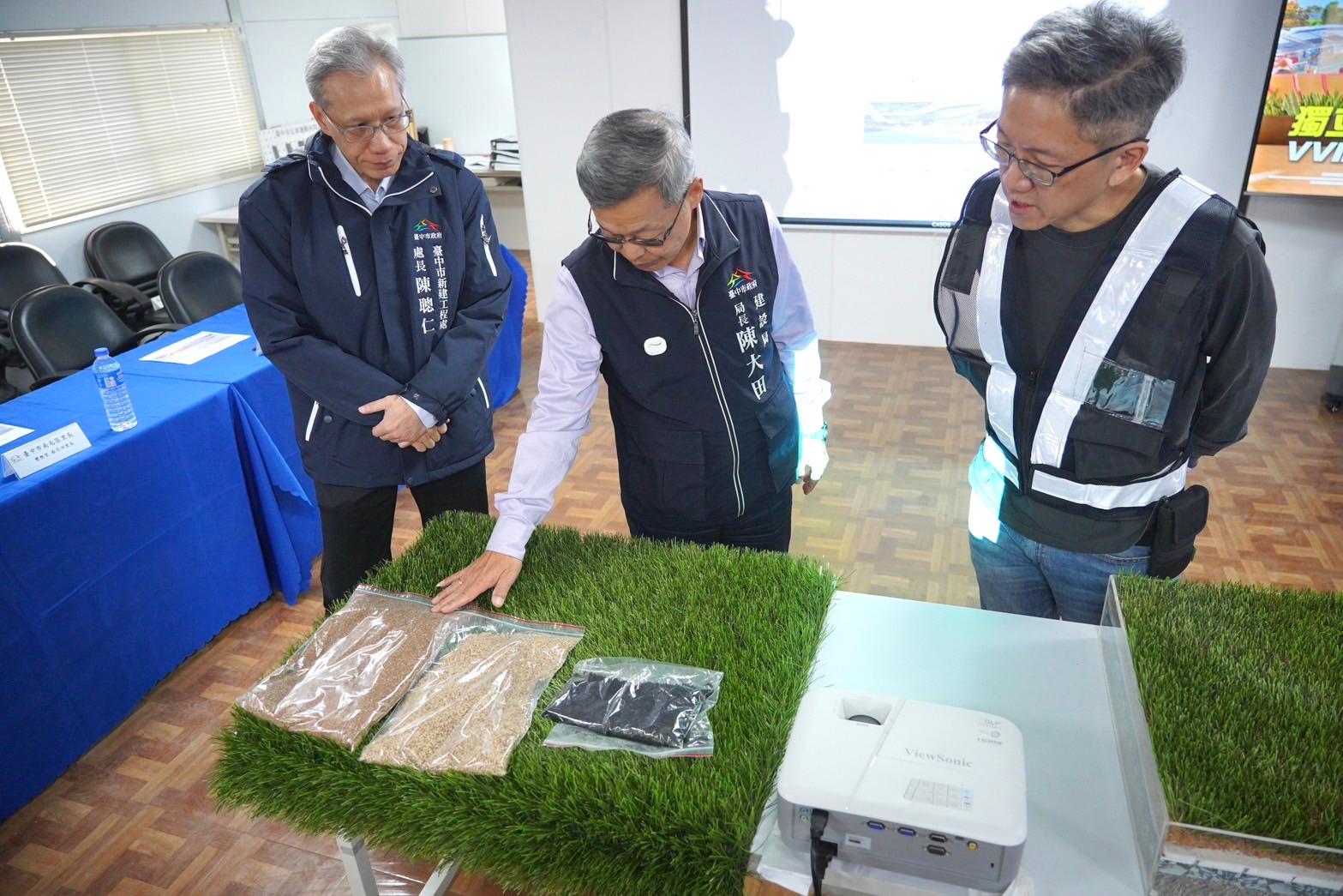 陳局長表示,「台中市國際足球運動休閒園區」是市府推動足球運動與完善運動設施的重要建設,基地位於南屯區,深受南屯、西屯地區居民期待,目前工程進度已達7成並持續超前。園區共規劃1座11人制天然草主競賽場、1座11人制人工草副球場及2座5人制足球場,其中天然草主競賽場將申請FIFA Quality Pro認證、副球場及5人制球場預計2月完成鋪設並辦理草皮認證,整體結構及場域預計7月完工,後續將交由運動局辦理招商委外,目標力拼今年底啟用,屆時可容納逾6,000人,成為台中國際級足球新地標。