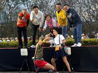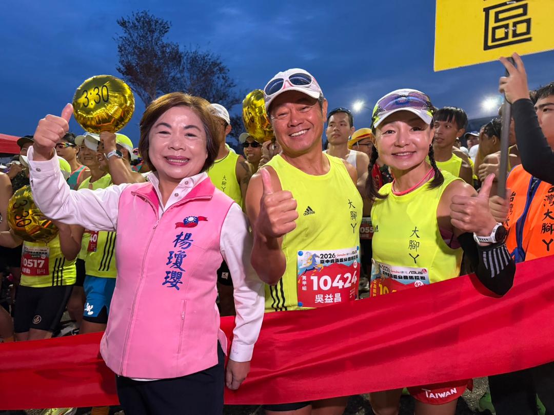 天色未亮,臺中國際展覽館周邊已湧入大批跑者,楊瓊瓔一早到場逐一向選手致意,為參賽選手打氣加油。她表示,公益馬拉松不只是運動,更象徵城市的活力與正能量,也呼應自己長期關注健康、運動與公益的理念。現場不少民眾認出她,紛紛上前合影、寒暄,氣氛熱絡。