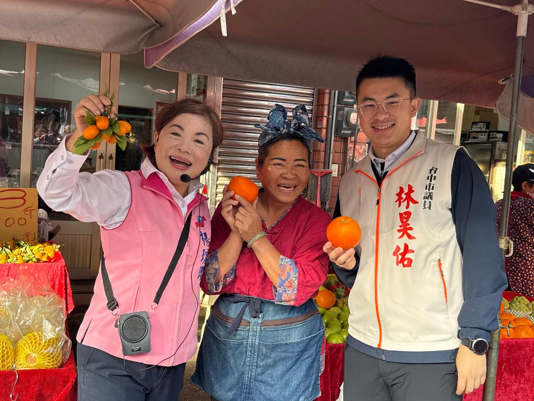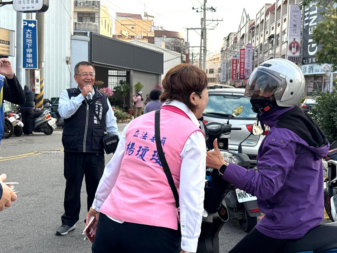 結束清晨行程後,楊瓊瓔馬不停蹄轉往大肚公有市場掃街懇託,台中市議員林昊佑全程陪同。與楊瓊瓔在省議員時期就結識、現年96歲的前大肚鄉民代表陳文彬,也在兒子、現任大肚區頂街里里長陳武徹陪同下現身力挺。