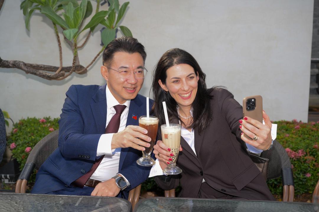 行程中,江啟臣也特別準備象徵祝福的「馬上幸福」春聯致贈艾達莫娃,寓意情誼長存、合作順利,並以臺灣傳統文化向國際友人傳達誠摯祝福。艾達莫娃對這份別具意義的禮物表達感謝,並表示感受到臺灣人民的溫暖與熱情。