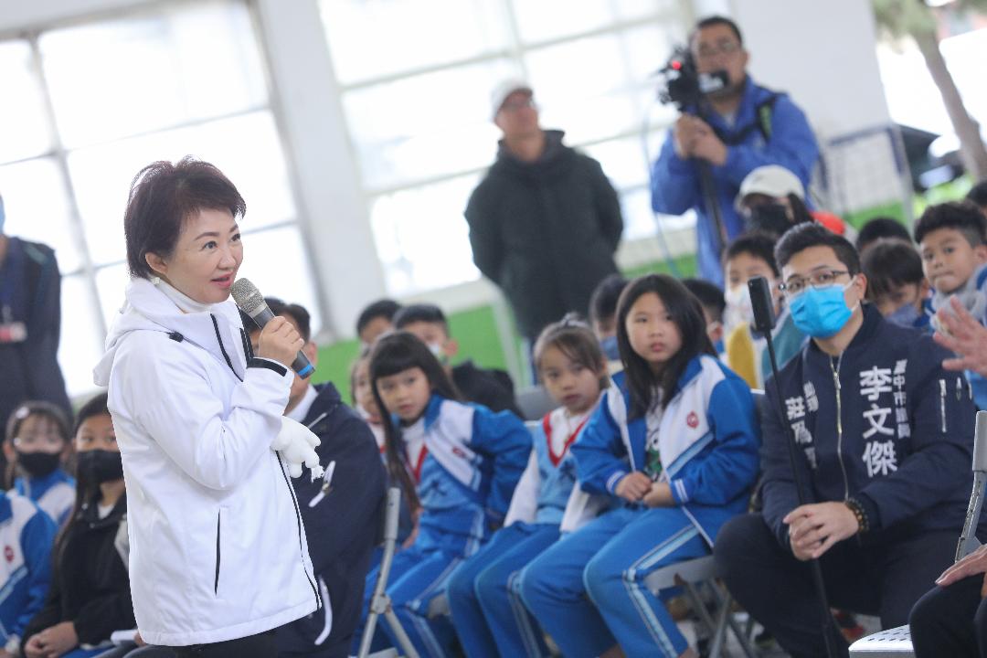 盧市長進一步說明,她擔任市長七年多來,持續推動校舍改建、為沒有禮堂的學校增建禮堂、全面汰換全市中小學的課桌椅為現代化可調式桌椅,以維護學童健康。目前大甲國小四年級以上的教室已快完成換裝,全市的課桌椅汰換也將於今年全數完成。此外,除了宣布「尚泳計畫」啟動,她向大家報告台中市政府今年推動的另外兩項重要政策:第一是「有鈣讚計畫」,我們持續提供學童飲用牛奶,為減輕教師行政負擔,學童只要拿數位學生證或有鈣讚數位卡證,可直接至超商兌換。對牛奶過敏的孩子,也可選擇換成豆漿,希望孩子們都能喝得健康,長得頭好壯壯。