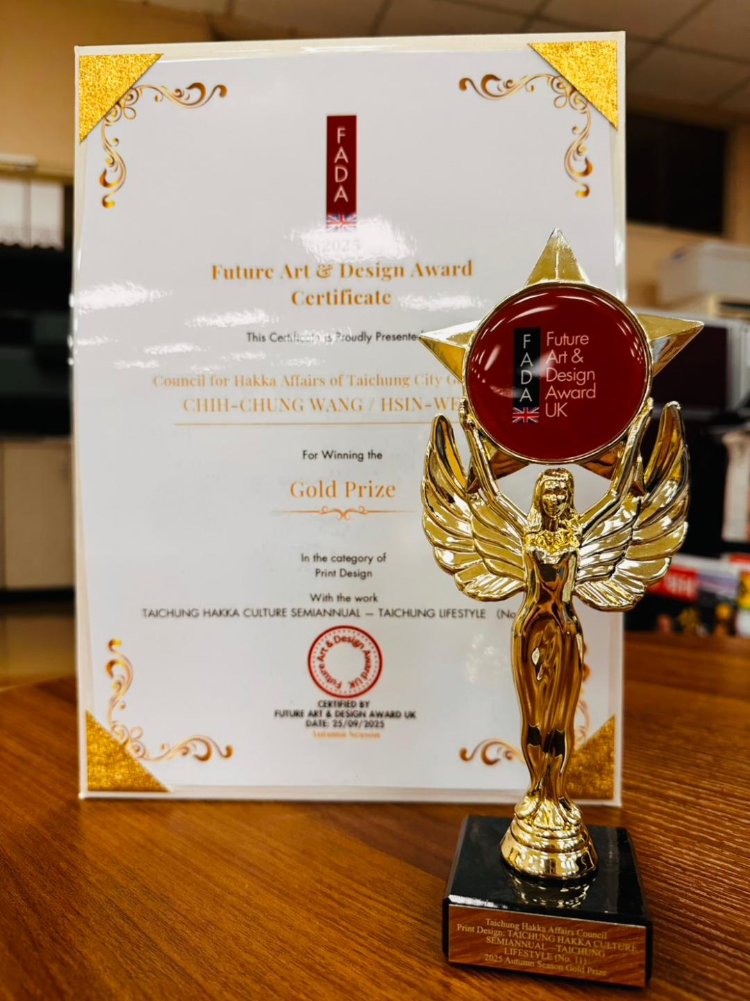 一本記錄客庄日常、人物故事與生活記憶的文化刊物,悄悄站上了國際舞台!由台中市政府客家事務委員會所發行的《聽看台中客》台中客家文化半年刊,從全球眾多參賽作品中脫穎而出,榮獲 Future Art & Design Award UK(英國FADA設計獎)金獎肯定,讓屬於台中客庄的溫暖故事,被世界溫柔地看見。