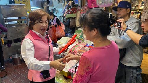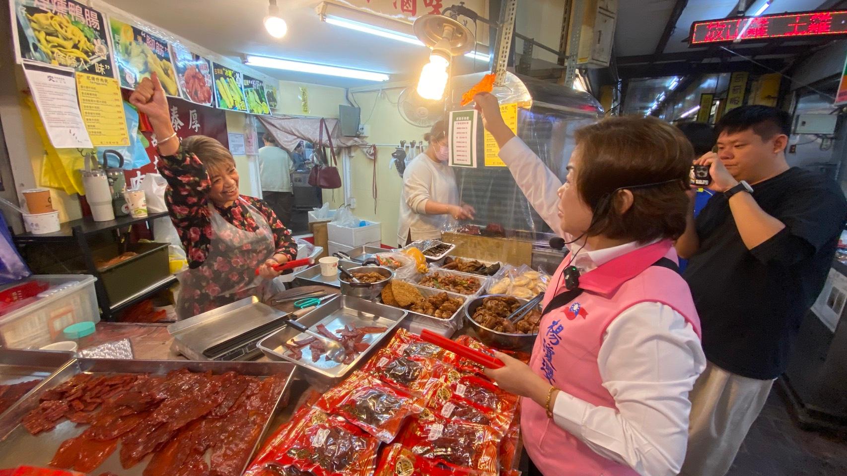 第二市場是台中最具代表性的老市場之一,早在日治時期便已形成商業聚落,不僅承載中區百年商業記憶,也見證城市發展軌跡。楊瓊瓔走進市場,沿途逐一向攤商與採買民眾問候、握手寒暄,並特別停下腳步與多位老攤商話家常,關心市場整建、觀光人潮與中區再生等議題,細細傾聽基層心聲。