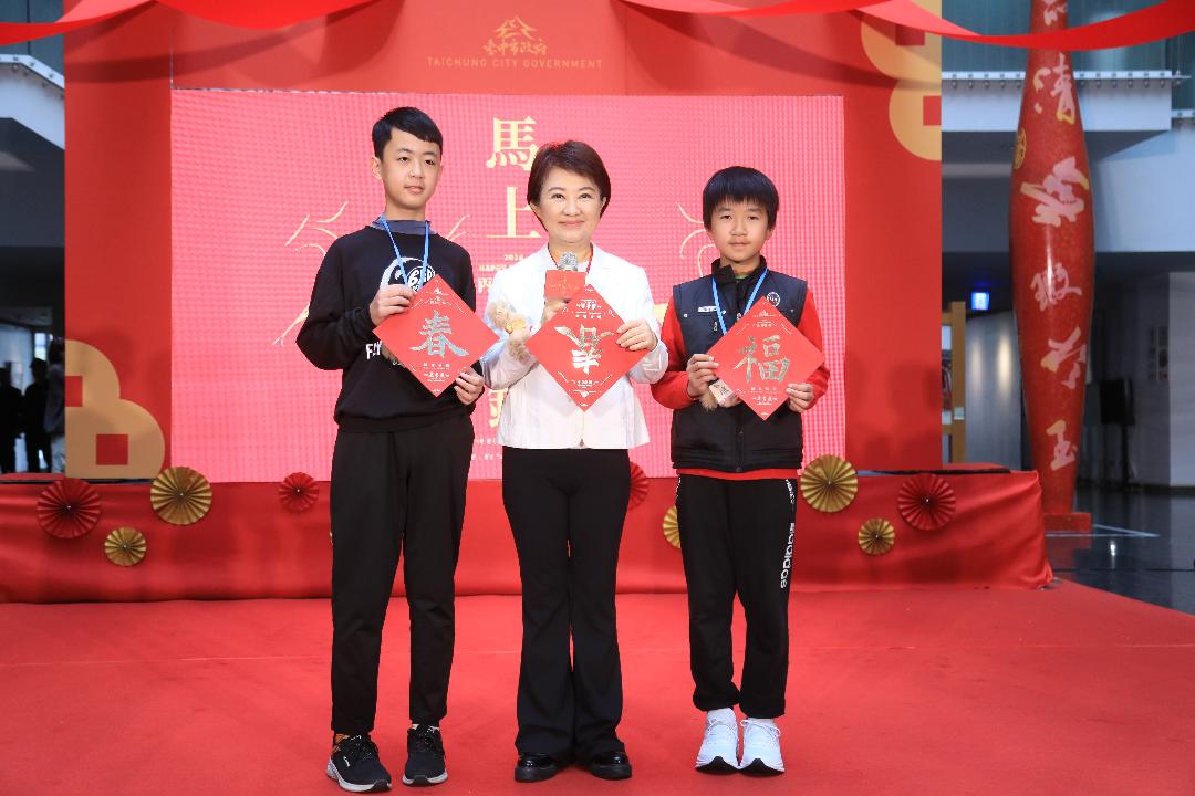 台中市政府今(26)日舉行「台中市政府115年迎新揮毫贈春聯」活動記者會,市長盧秀燕與台中在地天團玖壹壹現場揮毫,公布三大驚喜彩蛋,包括邀請知名天團玖壹壹為台中書寫馬年春聯、除家戶版「馬上有錢」外,揭曉兩款隱藏版「超級馬利」及「龍馬有春」限量發送;此外,更邀請兩位全國語文競賽特優學生,為台中書寫單字春聯「春」與「福」,象徵欣欣向榮、福氣來到的好兆頭。