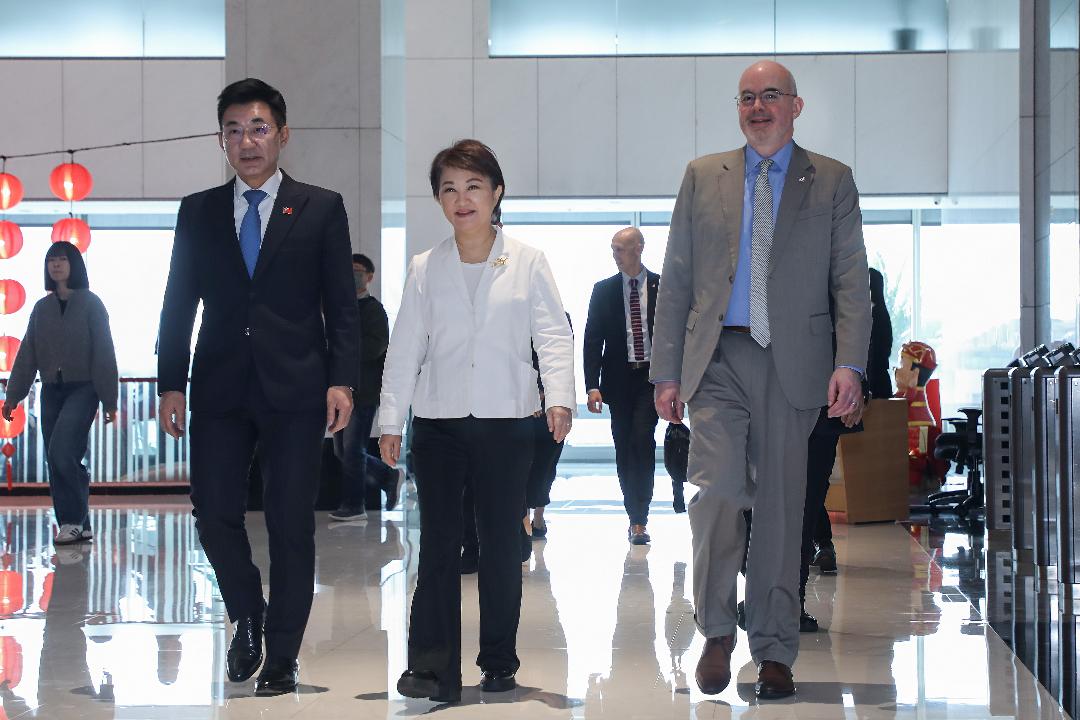 立法院副院長江啟臣今(6)日邀請美國在台協會(AIT)處長谷立言(Raymond Greene)共同參訪台中精機,並出席由台灣AI機器人產業大聯盟主辦的「中部AI機器人產業發展交流座談會」。盧秀燕市長呼籲中央加碼投資,串連中南部形成「科技中南半島」,以數位力強化城市競爭力,領航台灣科技飛向世界。江啟臣在會中倡議,應在台中規劃設立「AI機器人產業園區」,整合中部既有的精密機械優勢,並爭取與美國在新創及研發上的深度合作,讓台中成為美方在AI機器人領域可信賴的夥伴。