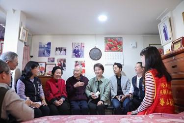 盧市長表示,春節將至,今日她特別代表台中市政府前往探視兩位長輩,向長輩們表達關懷並致贈年菜與祝福;由於其子女長年旅居國外,平日由社福團體與機構提供照顧服務,包括居服員到宅、送餐服務及陪同就醫等,生活起居均獲妥善照料,兩位長輩目前身體硬朗、精神良好。農曆春節是最溫暖的重要節慶,盧市長也呼籲大家在團圓之際,別忘記關心獨居長者、高齡者、身心障礙者及遭逢家庭變故的族群,共度平安好年。