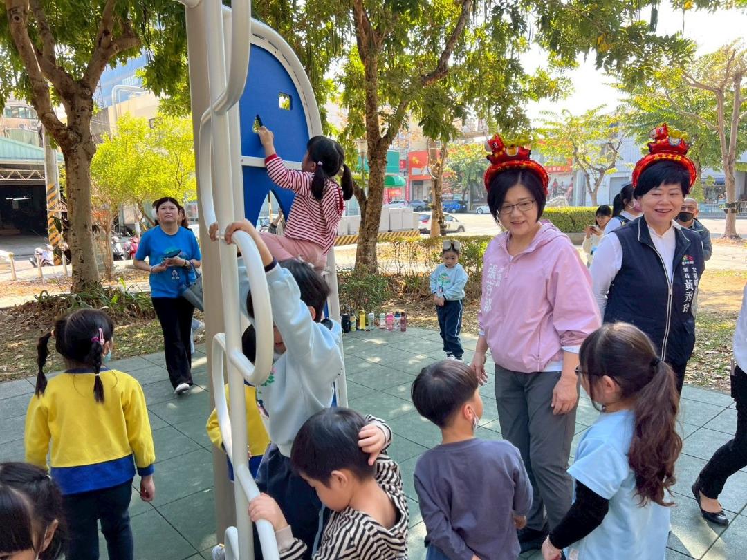 1150223中市議員張芬郁爭取公園優化升級 百位孩童歡呼啟用新遊具