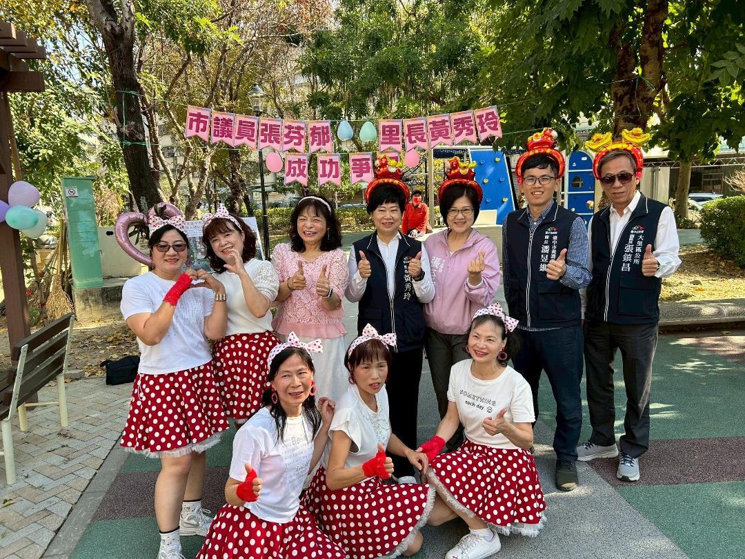 今天是馬年開工第一天,市議員張芬郁和永隆里長黃秀玲邀請里民和孩童一起見證大明兒童公園新遊戲區完工,包括大里好兒美幼兒園80位孩童、永隆里閃亮廣場舞隊、多位鄰長和大里區副區長張鎮昌、建設局養工處第四大隊長潘昱維等多人到場,大家互道恭喜馬上幸福、馬上得第一,小朋友開心玩遊具也領取元宵小提燈,氣氛熱鬧。