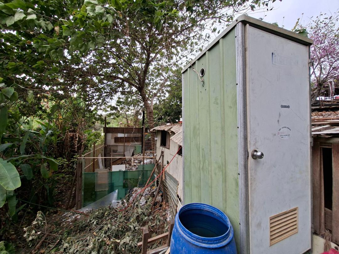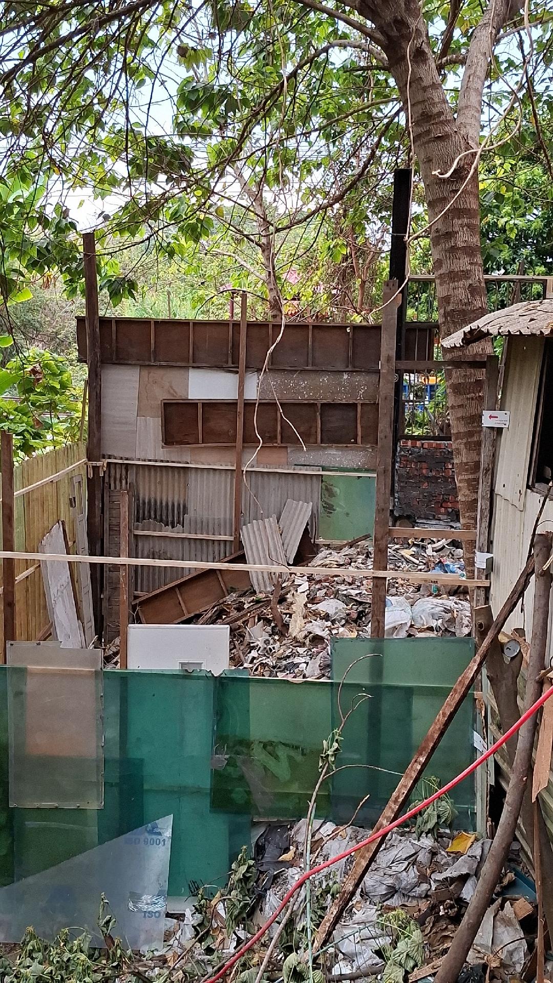 前大里市民代表黃財和住戶合力搬開棧板,發現裡面全是建築廢棄物,一旁還有一間廢棄工寮,也倒滿破碎磁磚及一間往溪底排放糞便水的簡易廁所,黃財表示,居民擔心豪雨季造成邊坡塌陷,也憂心堆置大廢裝潢廢棄物,若發生火警一發不可收拾。