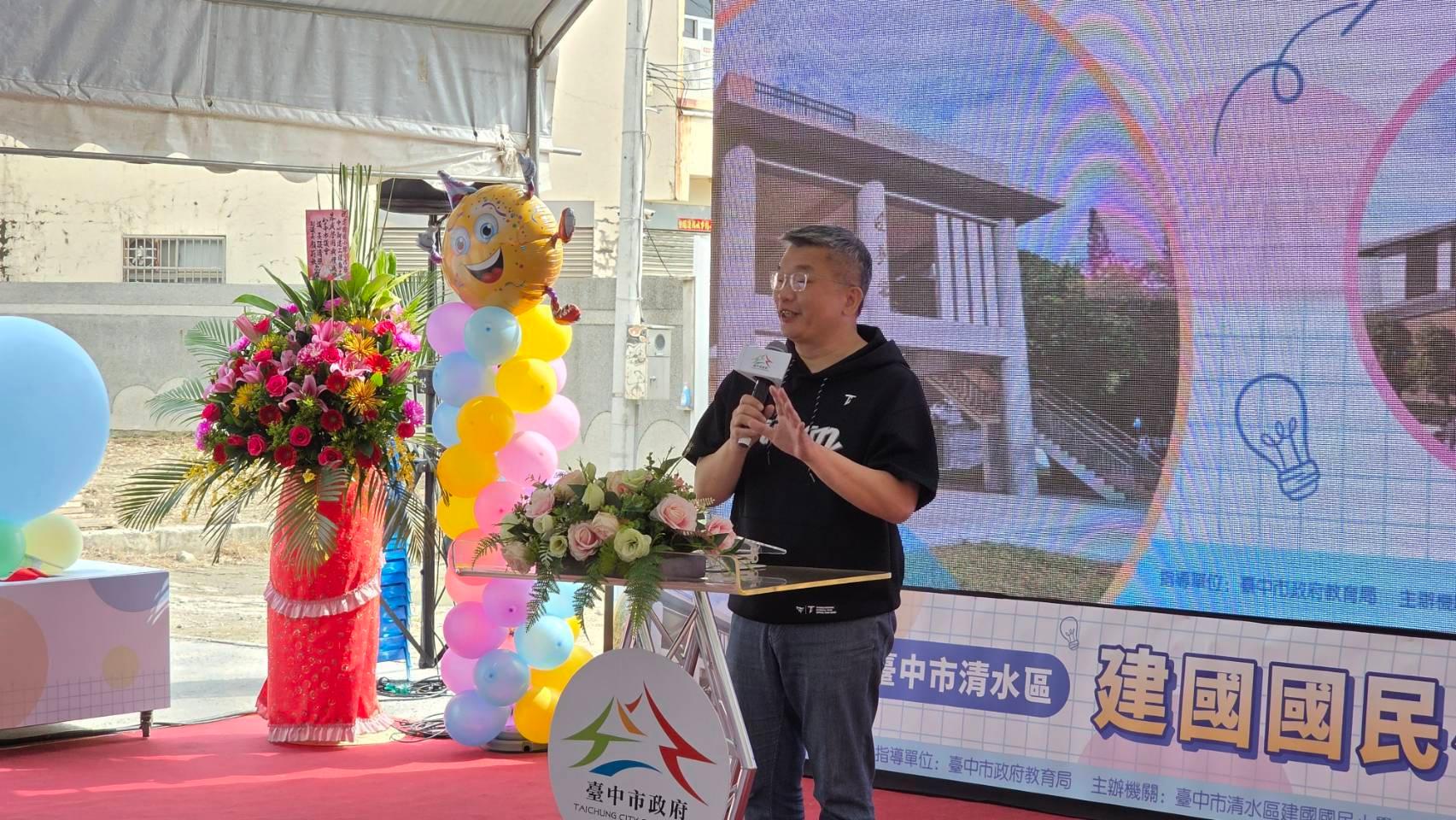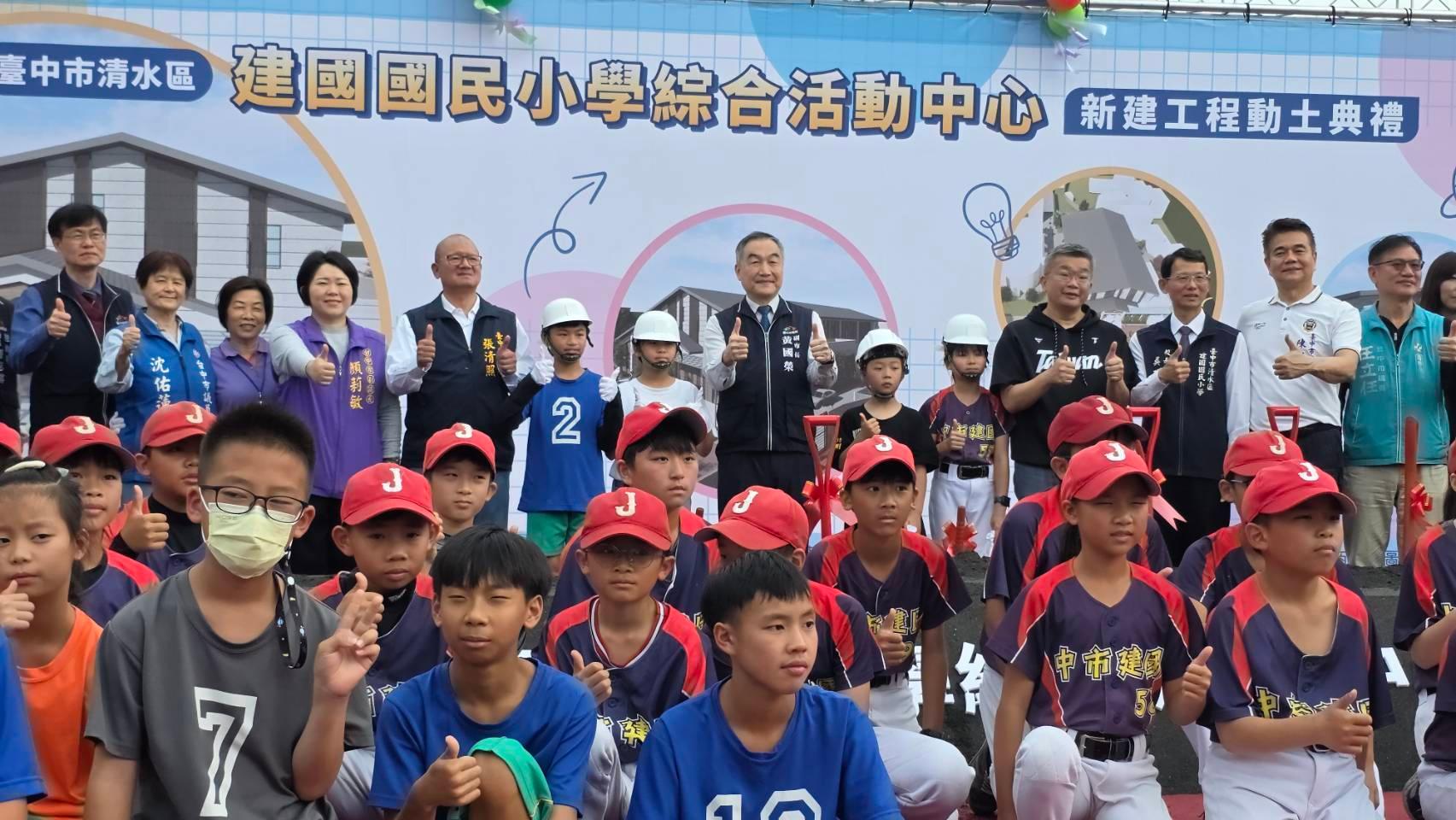 台中市清水區建國國民小學今(2)日舉行「綜合活動中心新建工程動土暨圓夢樓落成啟用典禮」,副市長黃國榮到場主持動土儀式,教育局長蔣偉民、地方民意代表、社區賢達、家長會及全校師生齊聚一堂,共同見證建國國小校園建設再升級的重要里程碑。