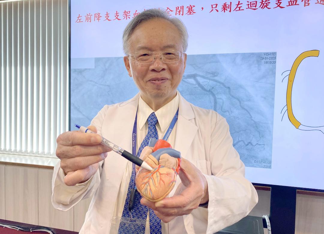 後續抵達急診室的60歲江先生病況更危急,他日前因左前降支冠狀動脈全阻塞導致急性心肌梗塞,彰化醫院緊急放置支架救回一命。沒想到出院當晚再度胸痛、血壓驟降,二度確診心肌梗塞,轉至臺中榮總經檢查確認其3條主要冠狀動脈塞了兩條。