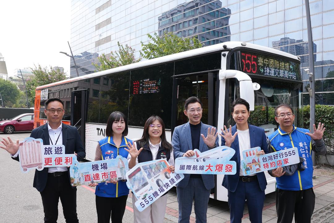 陳局長說明,在空中運輸量能提升之際,地面交通服務也同步升級。「台灣好行555機場快捷線」採單循環路線運行,路線串聯台中國際機場、綠美圖、捷運文華高中站、市政府站及市區核心商圈,車程約30分鐘就可往返機場與市區,站點精簡、轉乘順暢,並提供7國語音導覽及行李置物空間,讓旅客感受更友善、更便捷的移動體驗。